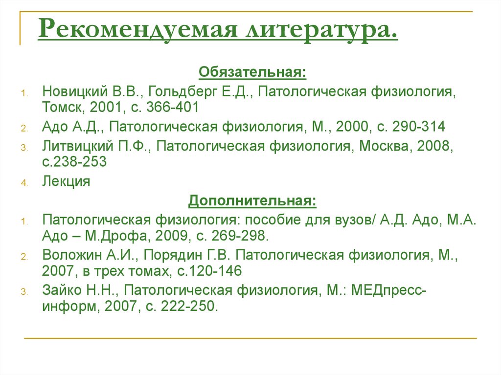 Зайко Н.Н., Патологическая физиология, М.: МЕДпрессинформ, 2007, с. 222-250.