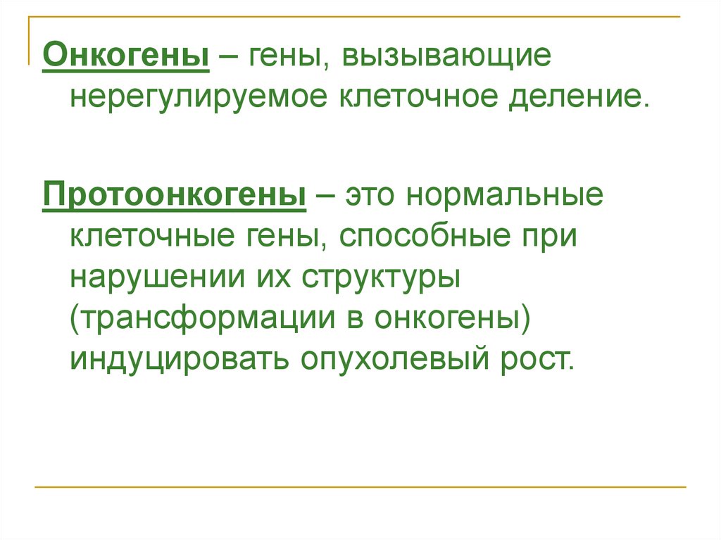 Онкогены – гены, вызывающиенерегулируемое клеточное деление.
