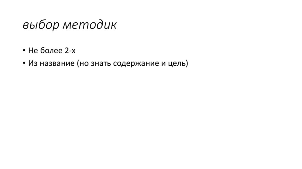 выбор методик• Не более 2-х