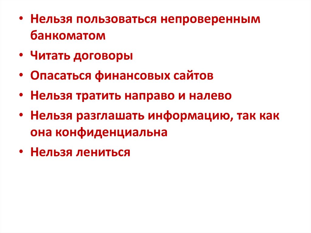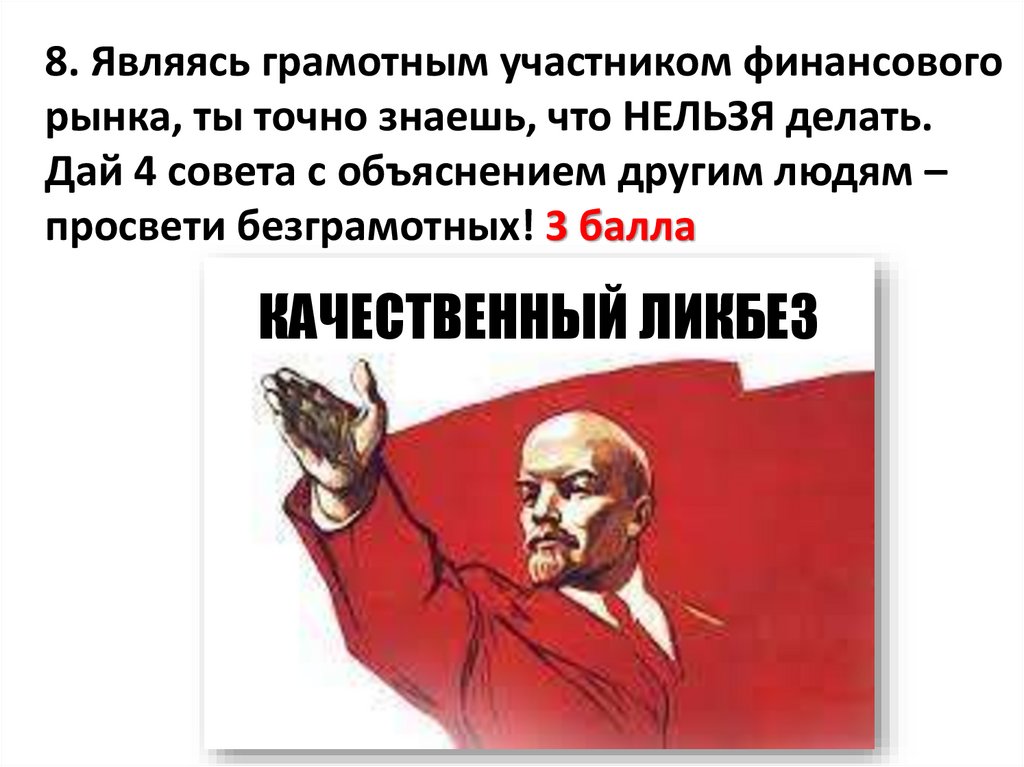 8. Являясь грамотным участником финансовогорынка, ты точно знаешь, что НЕЛЬЗЯ делать.