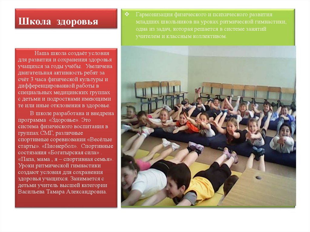 На уроке ритмической гимнастикиНа уроке ритмической гимнастики ребята развивают свои