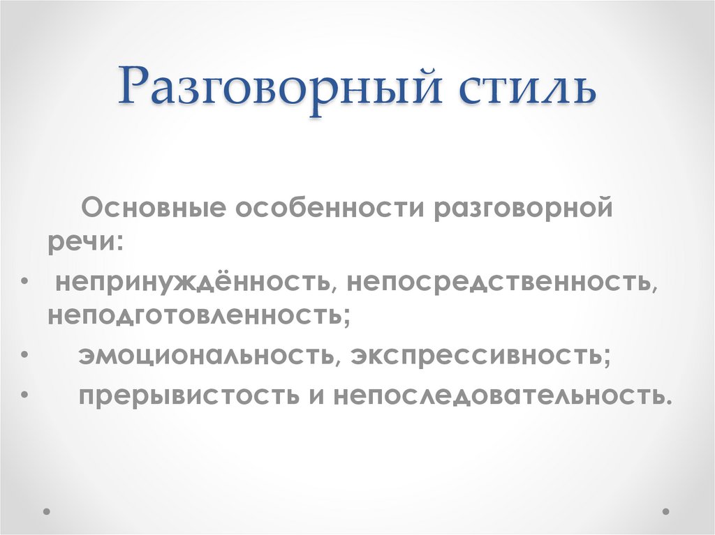 Разговорный стильОсновные особенности разговорной