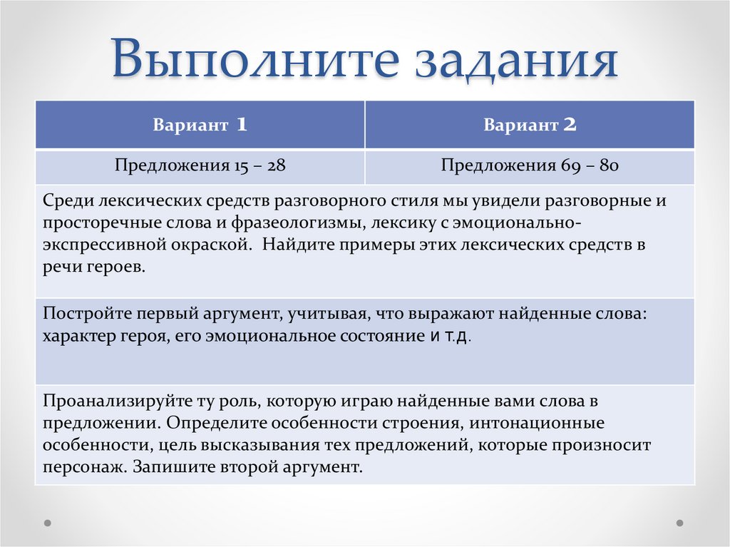Выполните заданияВариант