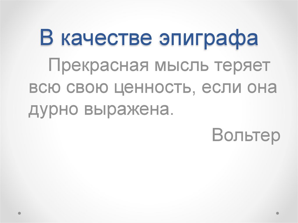 В качестве эпиграфаПрекрасная мысль теряет