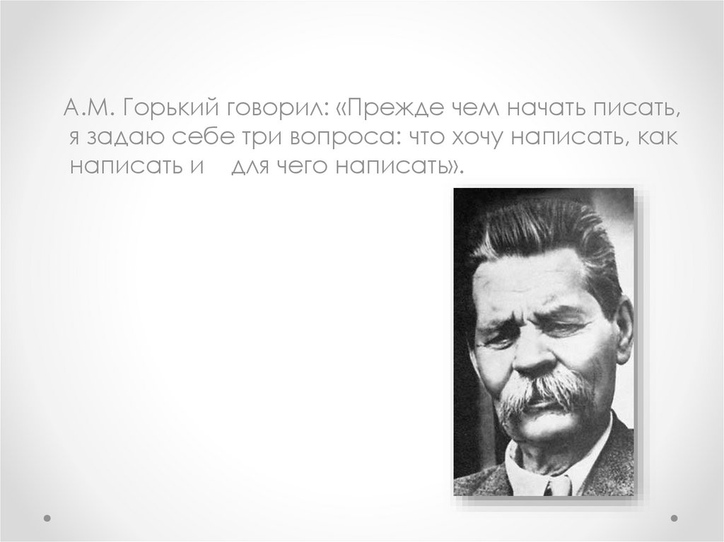 А.М. Горький говорил: «Прежде чем начать писать,я задаю себе три вопроса: что хочу написать, как