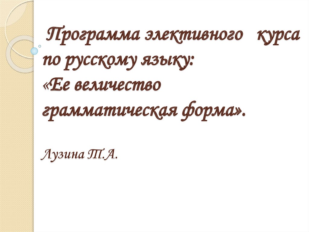 Программа элективного курса по русскому языку: «Ее величество грамматическая форма»