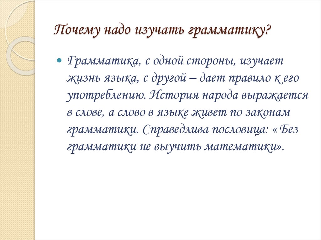 Почему надо изучать грамматику?Грамматика, с одной стороны, изучает