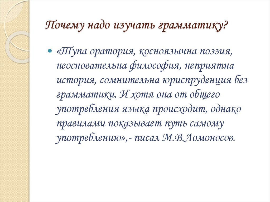 Почему надо изучать грамматику?«Тупа оратория, косноязычна поэзия,