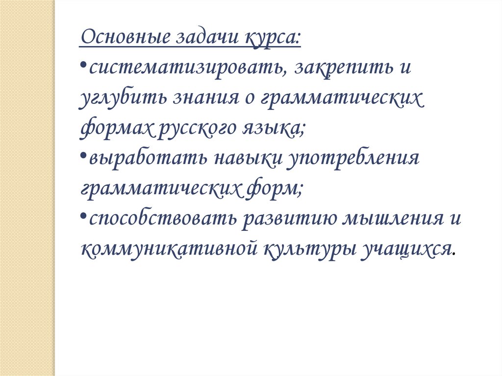 Основные задачи курса:•систематизировать, закрепить и