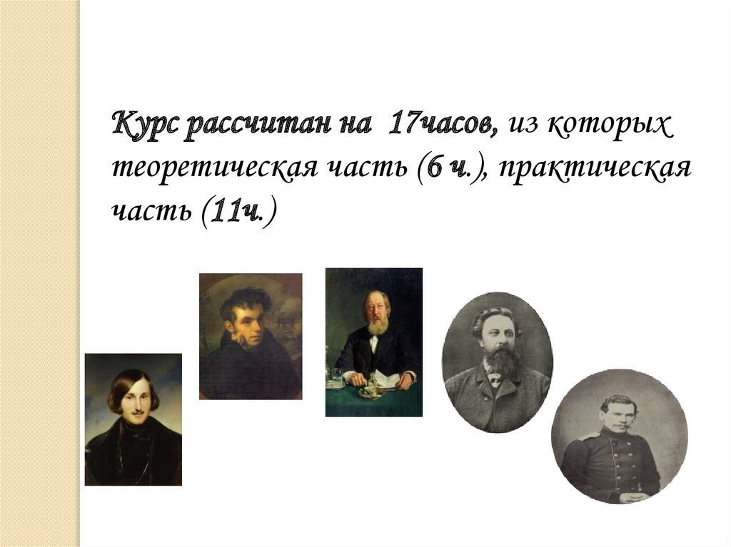 Курс рассчитан на 17часов, из которыхтеоретическая часть (6 ч.), практическая