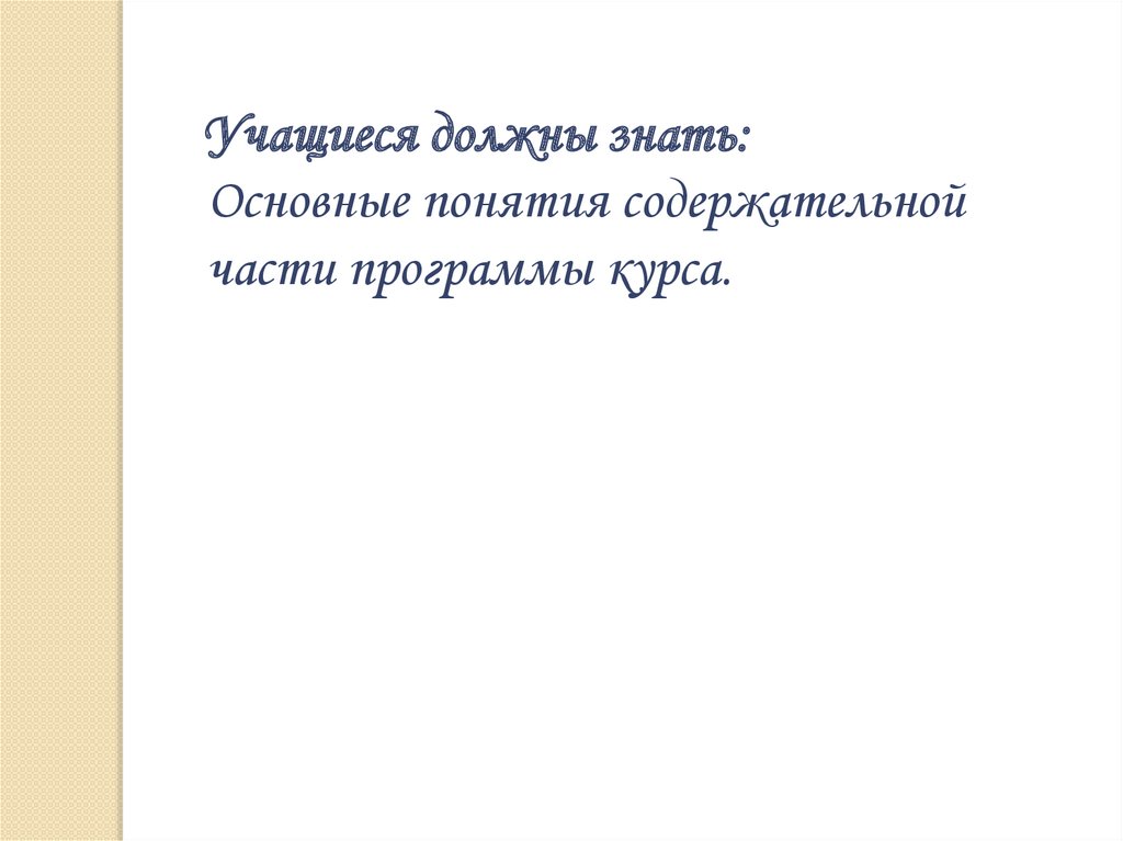 Учащиеся должны знать:Основные понятия содержательной