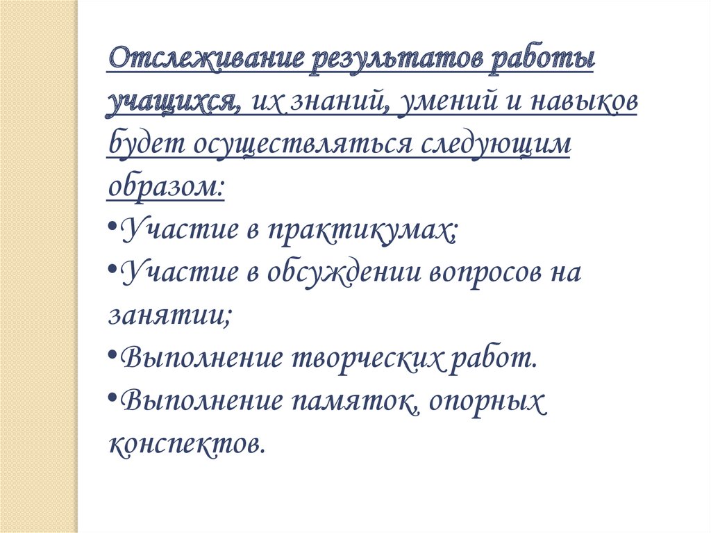 •Выполнение творческих работ.