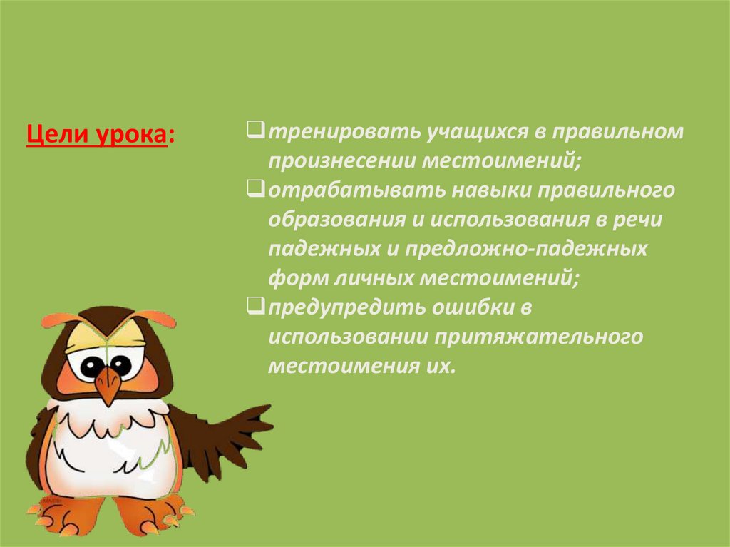 Цели урока:тренировать учащихся в правильном