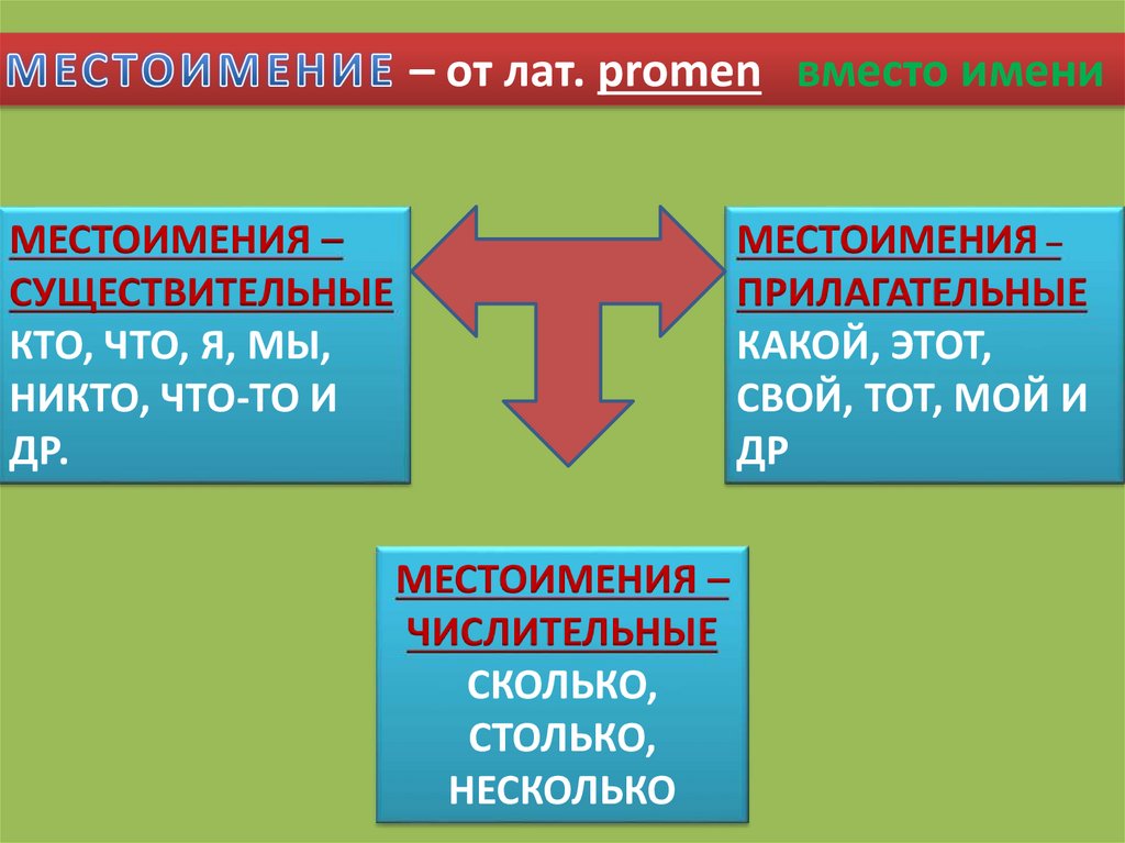 – от лат. рromen вместо имениМЕСТОИМЕНИЯ –