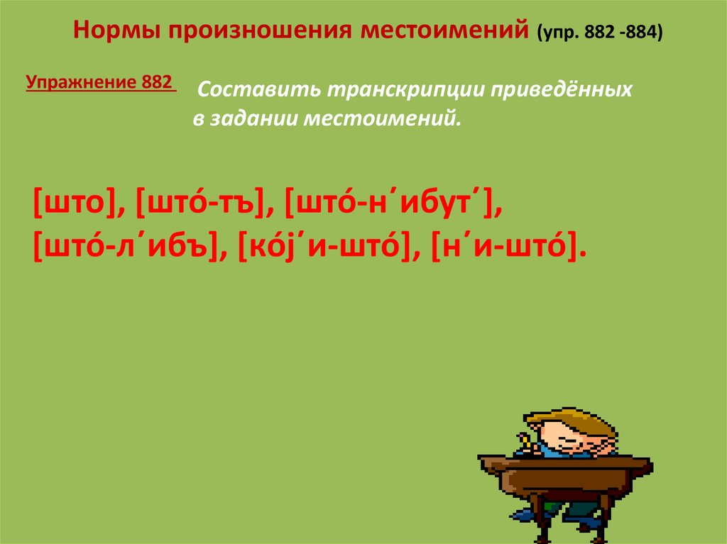 Нормы произношения местоимений (упр. 882 -884)Упражнение 882