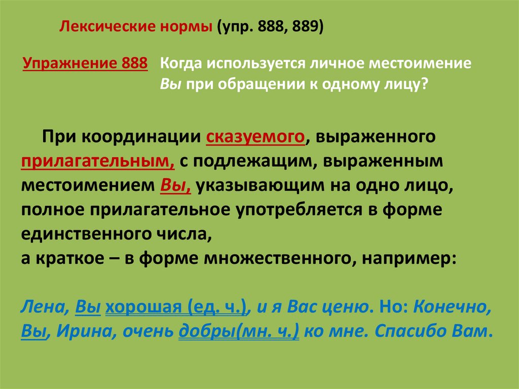 Лексические нормы (упр. 888, 889)Упражнение 888 Когда используется личное местоимение