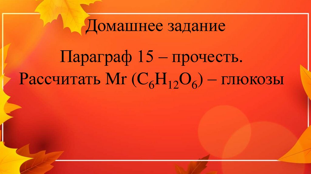 Рассчитать Mr (C6H12O6) – глюкозы