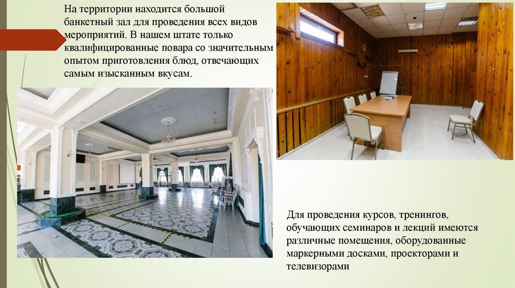 тренингов, корпоративов имеются: