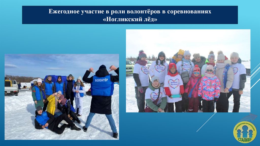Ежегодное участие в роли волонтёров в соревнованиях«Ногликский лёд»