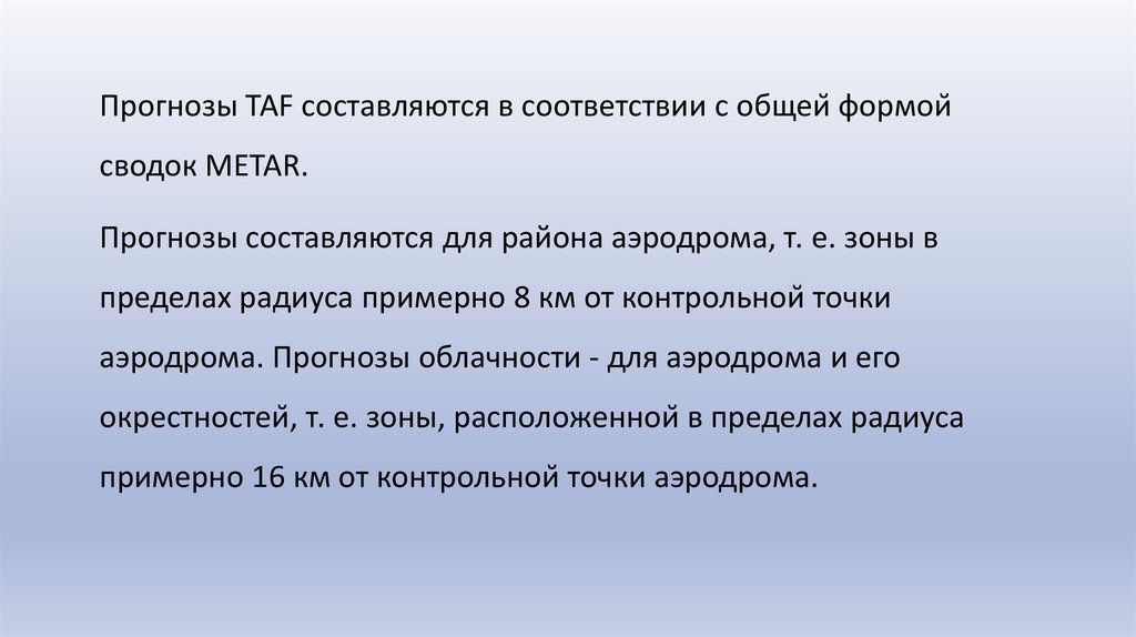 Прогнозы составляются для района аэродрома, т. е. зоны в