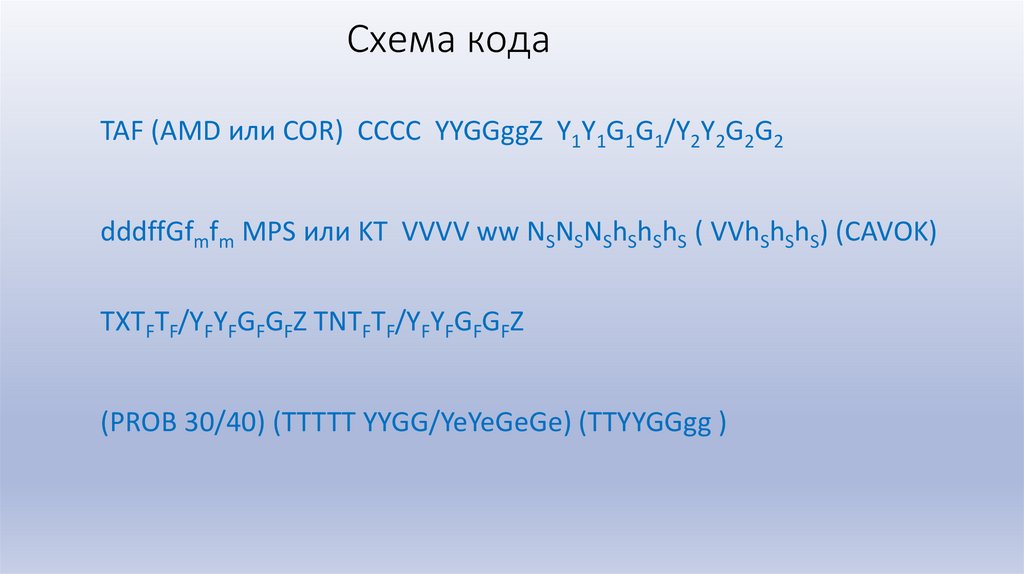 Схема кодаTAF (AMD или COR) CCCC YYGGggZ Y1Y1G1G1/Y2Y2G2G2