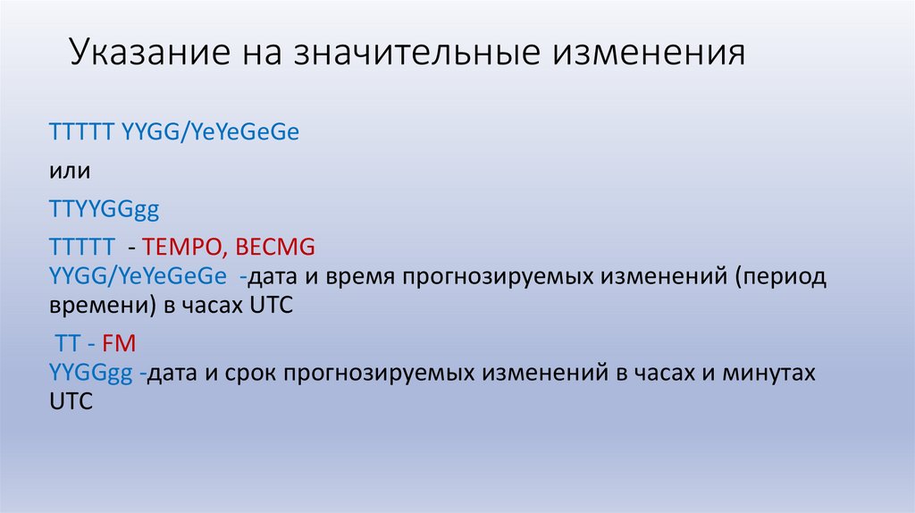 Указание на значительные измененияTTTTT YYGG/YeYeGeGe