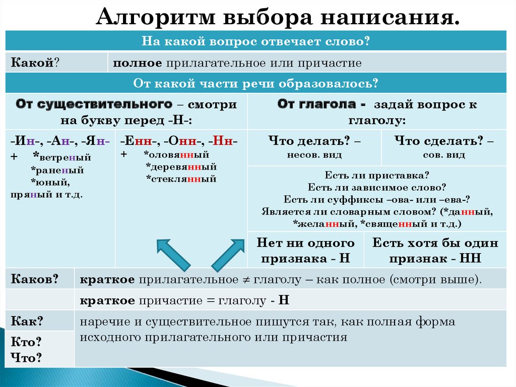 Алгоритм выбора написания.На какой вопрос отвечает слово?