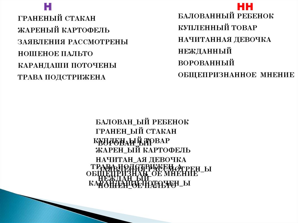 Н - НН в разных частях речи