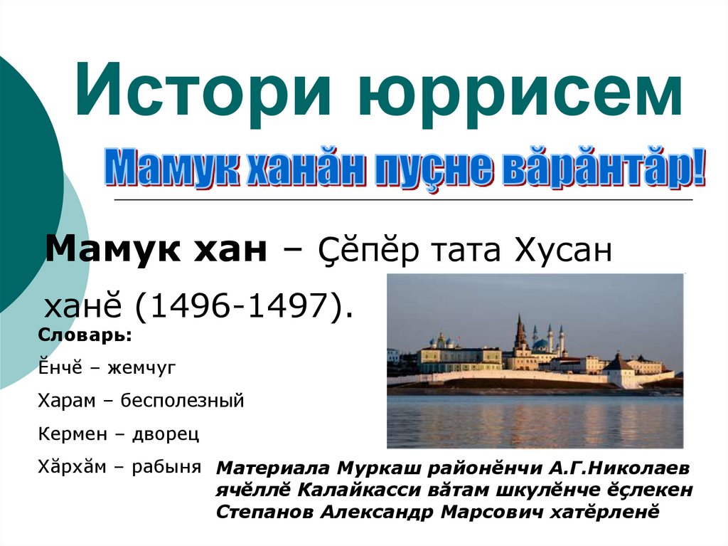 Хăрхăм – рабыня Материала Муркаш районĕнчи А.Г.Николаев