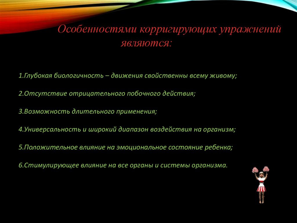 Особенностями корригирующих упражненийявляются: