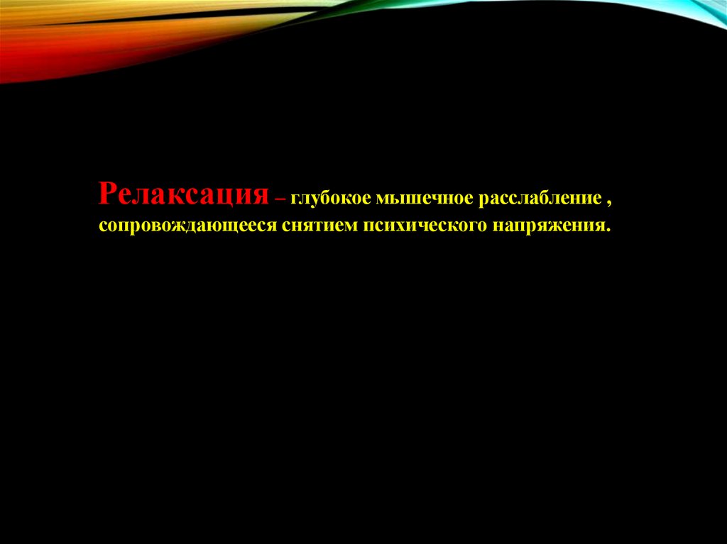 Релаксация – глубокое мышечное расслабление ,сопровождающееся снятием психического напряжения.