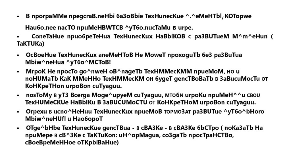 TexHUMeCKUe HaBbIKu B 3aBUCUMoCTU OT KoHKpeTHoM urpoBon cuTyaguu.