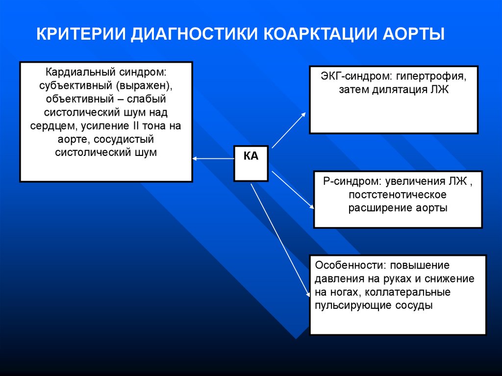 КРИТЕРИИ ДИАГНОСТИКИ КОАРКТАЦИИ АОРТЫКардиальный синдром:
