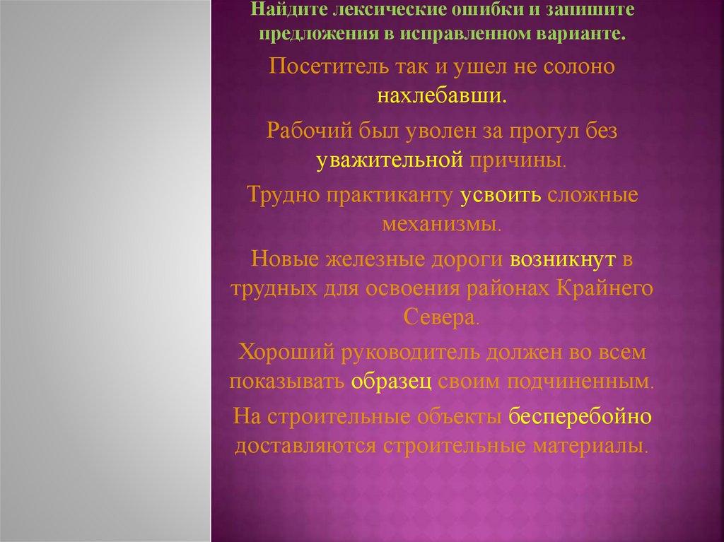 Найдите лексические ошибки и запишитепредложения в исправленном варианте.