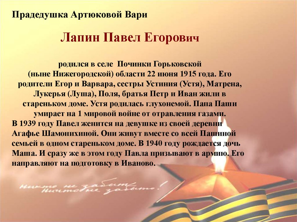 Прадедушка Артюковой ВариЛапин Павел Егорович