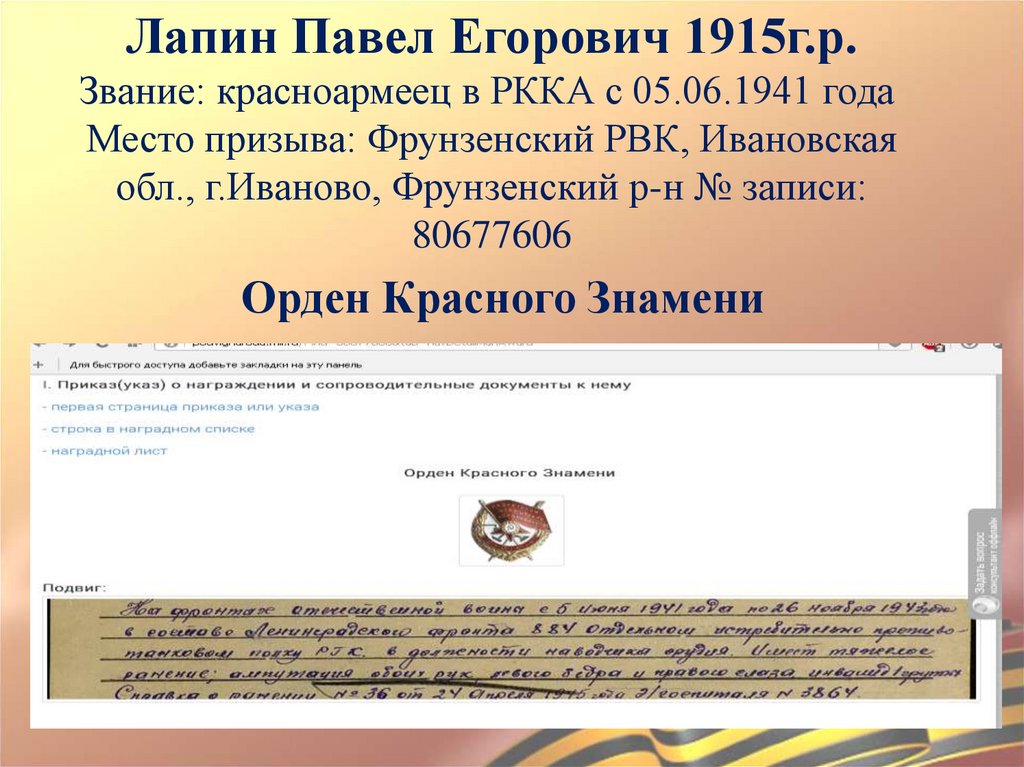 Лапин Павел Егорович 1915г.р.Звание: красноармеец в РККА с 05.06.1941 года