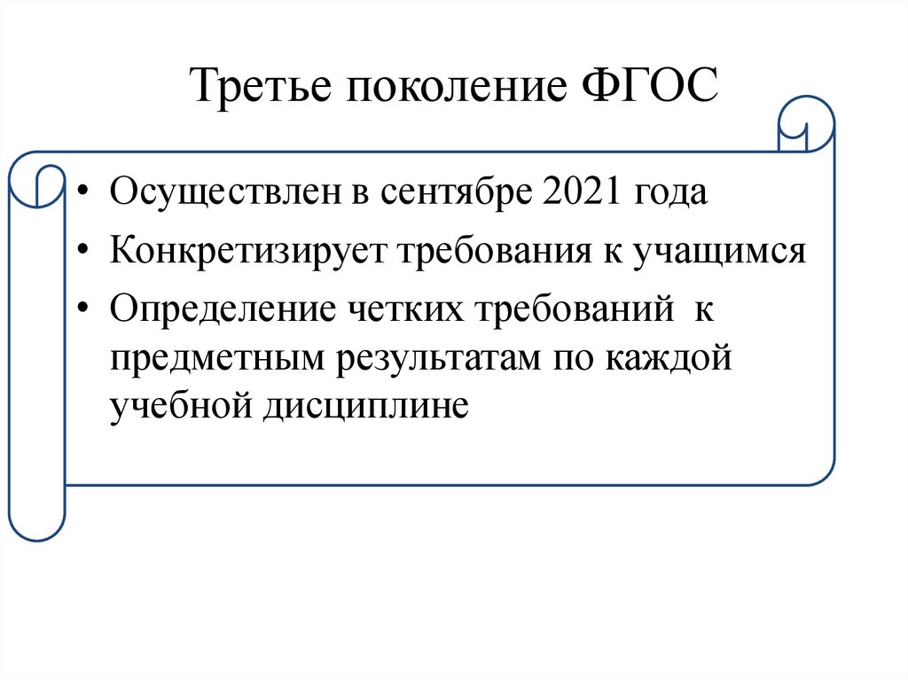 Третье поколение ФГОС• Осуществлен в сентябре 2021 года