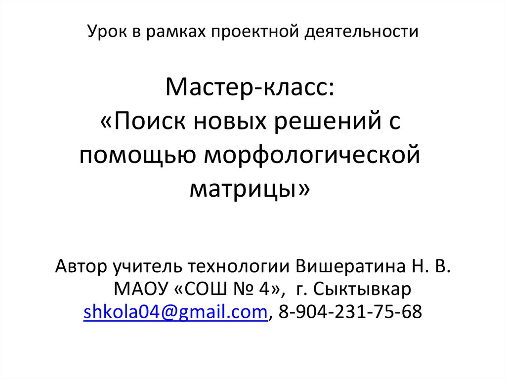 Мастер-класс: Поиск новых решений с помощью морфологической матрицы