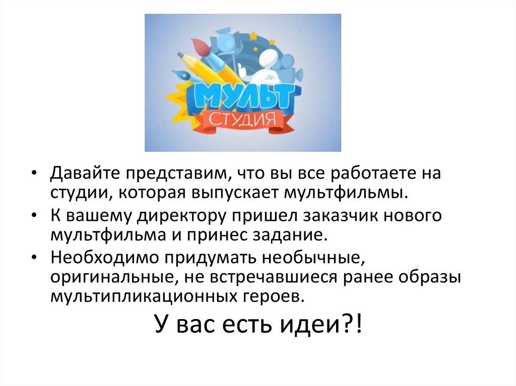• Давайте представим, что вы все работаете настудии, которая выпускает мультфильмы.