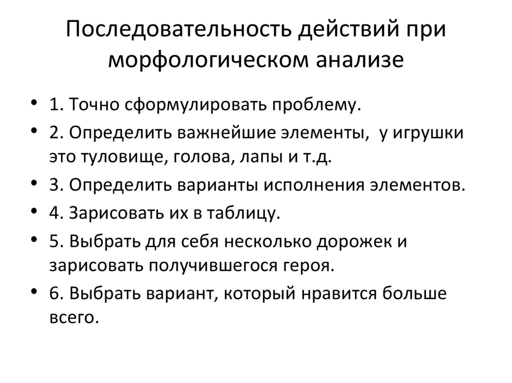 Последовательность действий приморфологическом анализе