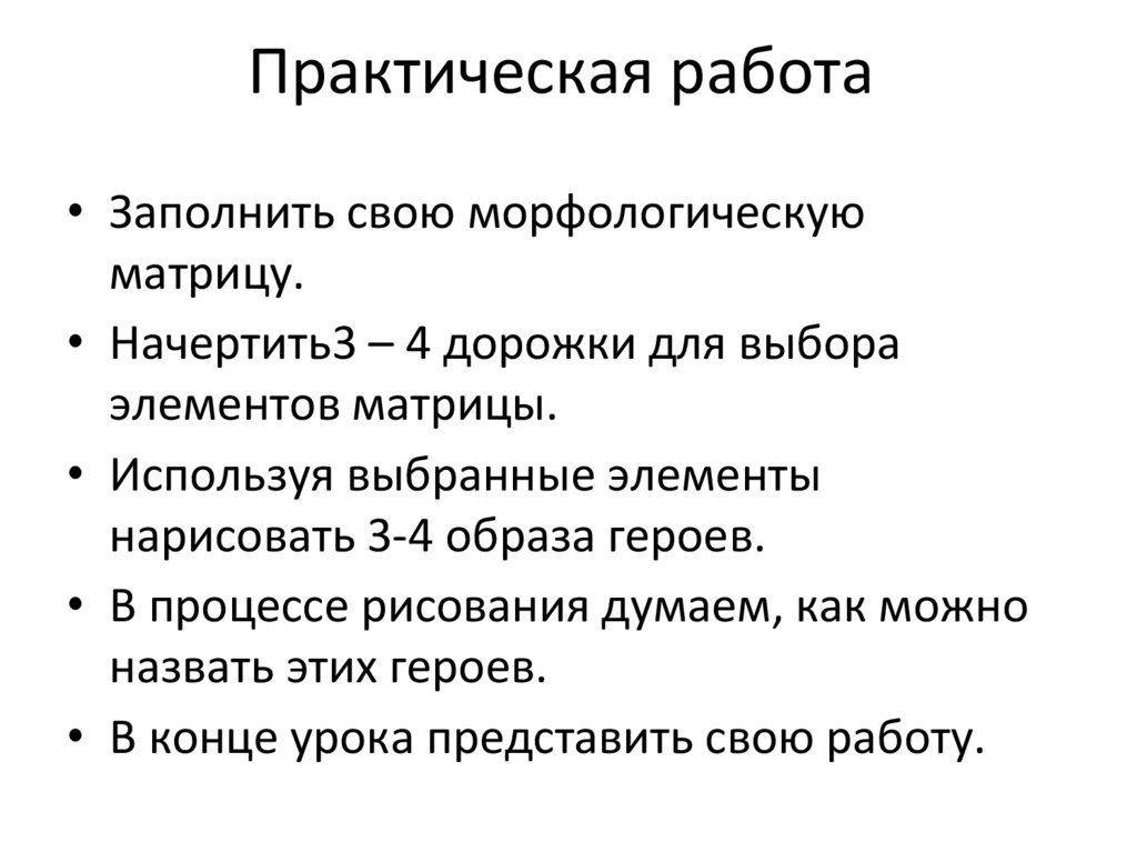 Практическая работа• Заполнить свою морфологическую