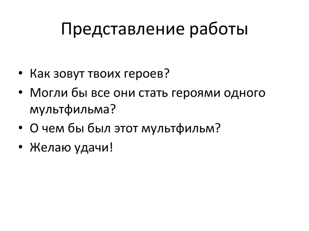 Представление работы• Как зовут твоих героев?