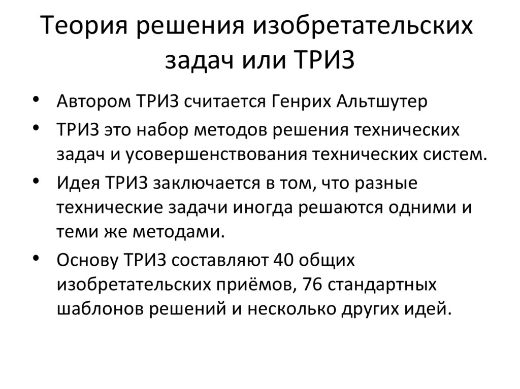 Теория решения изобретательскихзадач или ТРИЗ