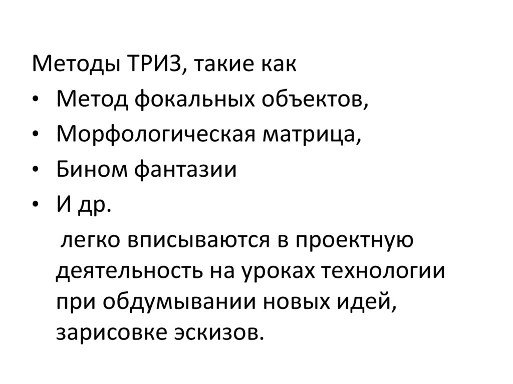Методы ТРИЗ, такие как• Метод фокальных объектов,