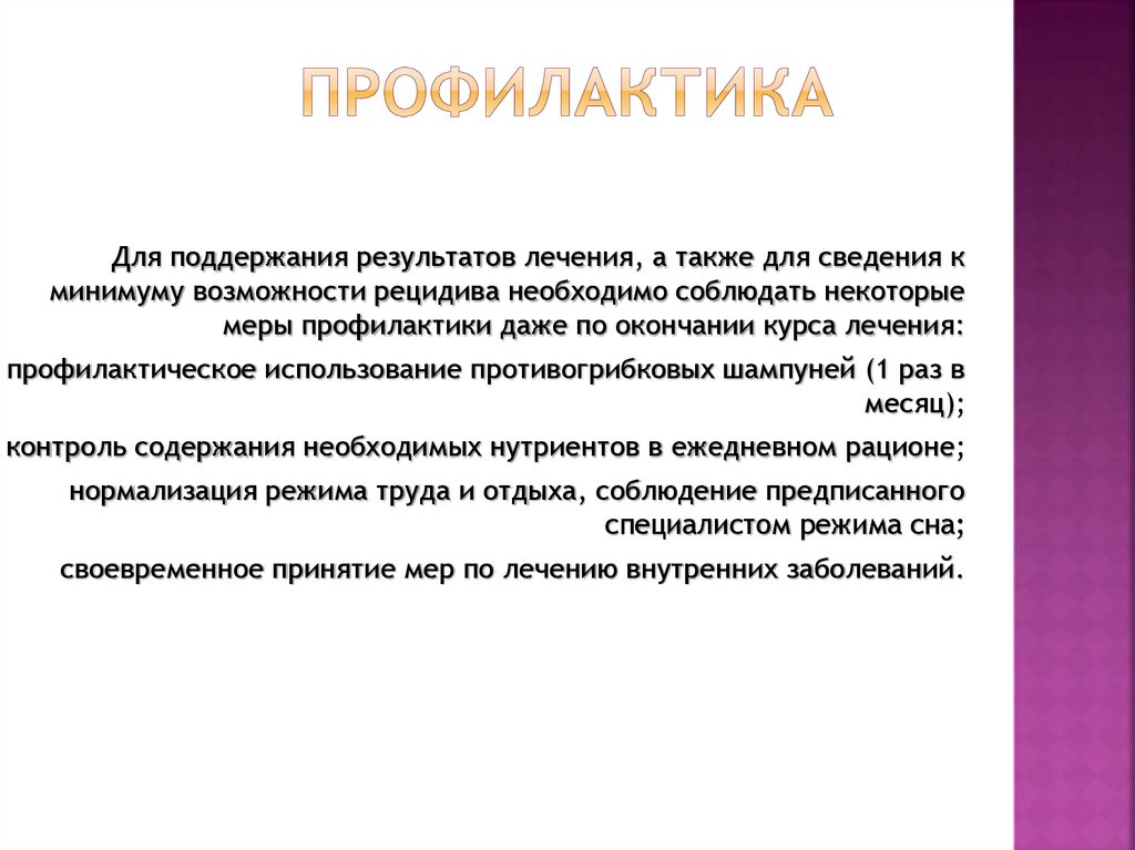меры профилактики даже по окончании курса лечения: