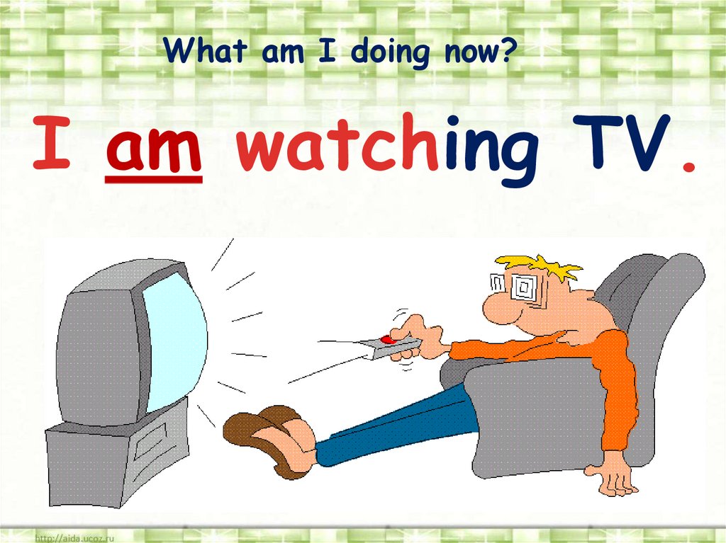 What am I doing now?I am watching TV.