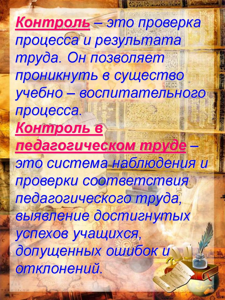 Контроль – это проверкапроцесса и результата