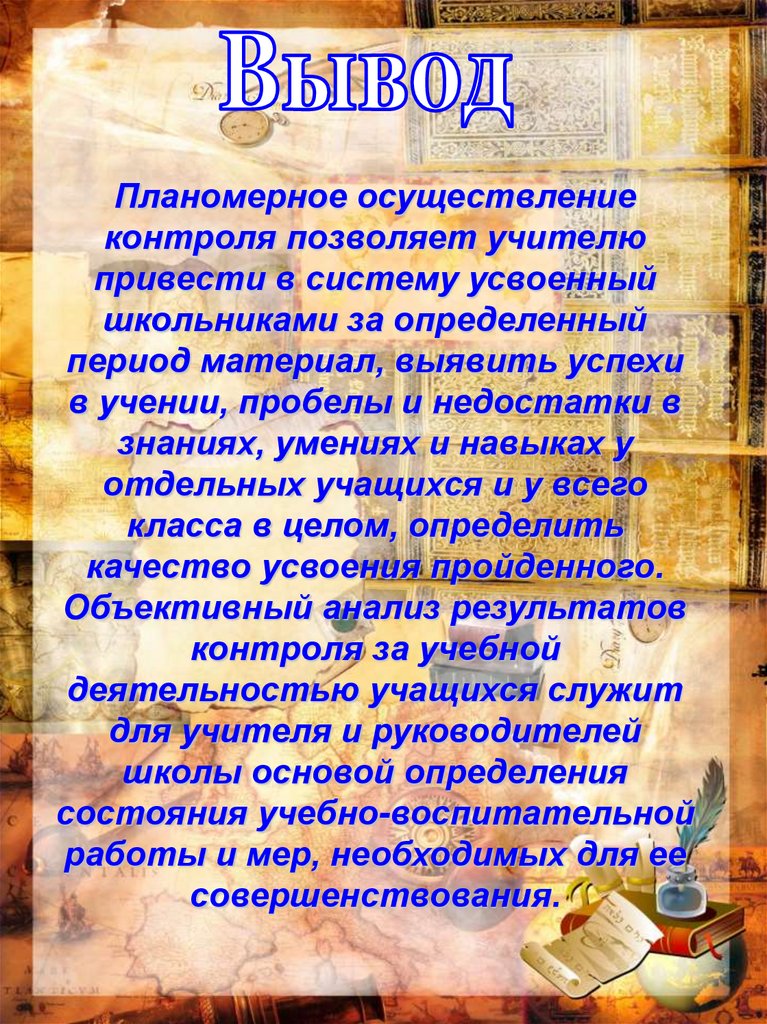 Планомерное осуществлениеконтроля позволяет учителю