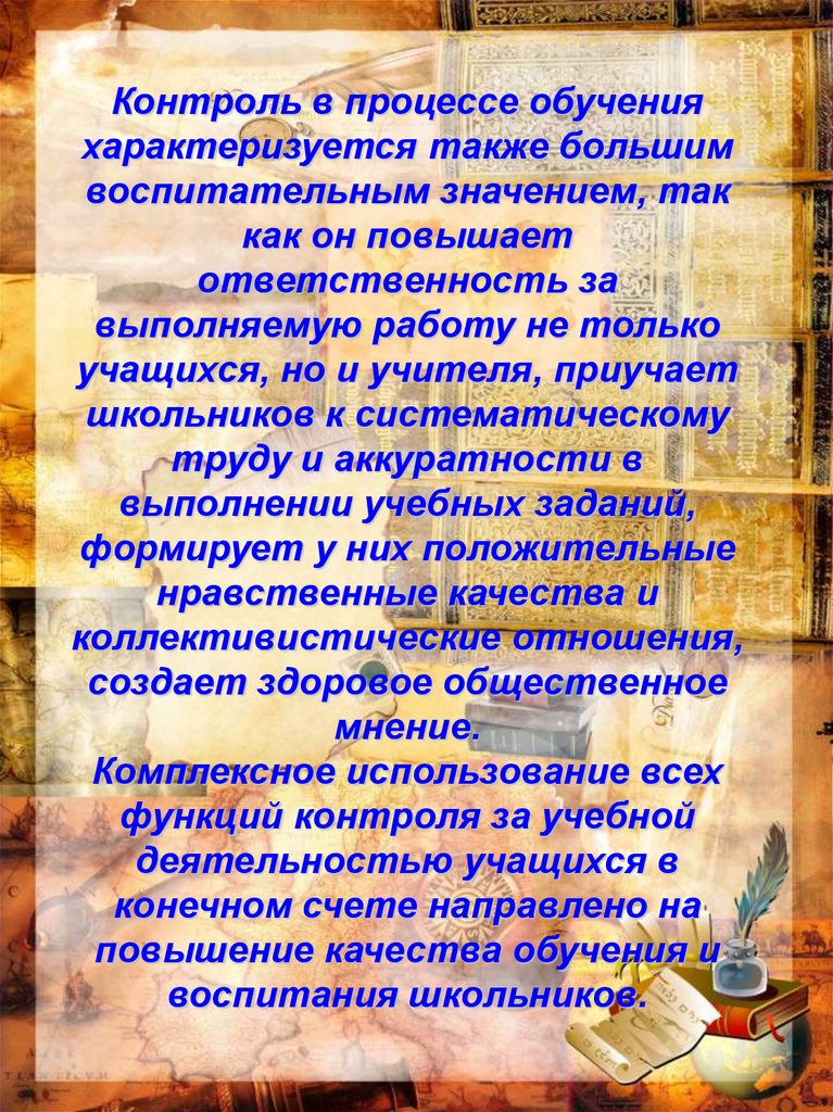 Контроль в процессе обученияхарактеризуется также большим