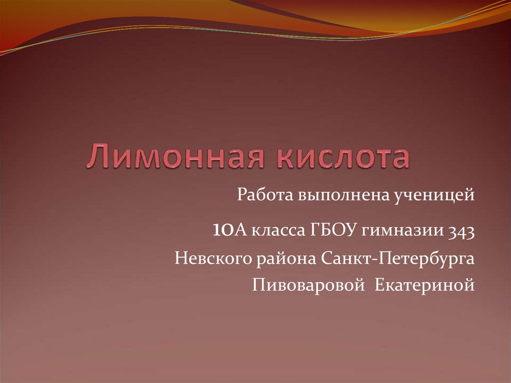 Работа выполнена ученицей10А класса ГБОУ гимназии 343